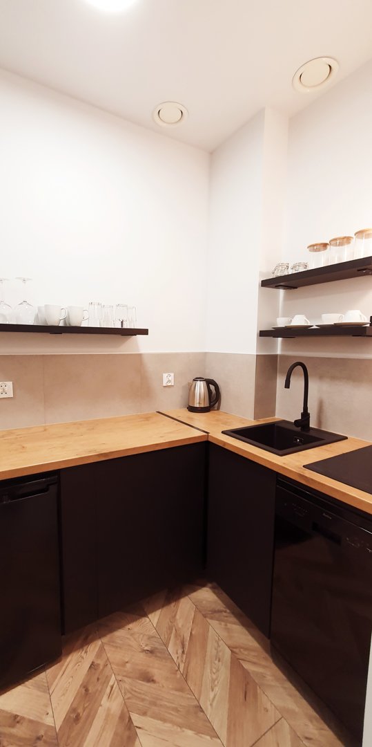 zmywarka, płyta indukcyjna 2 palniki, przybory kuchenne, komplet naczyń, garnków.